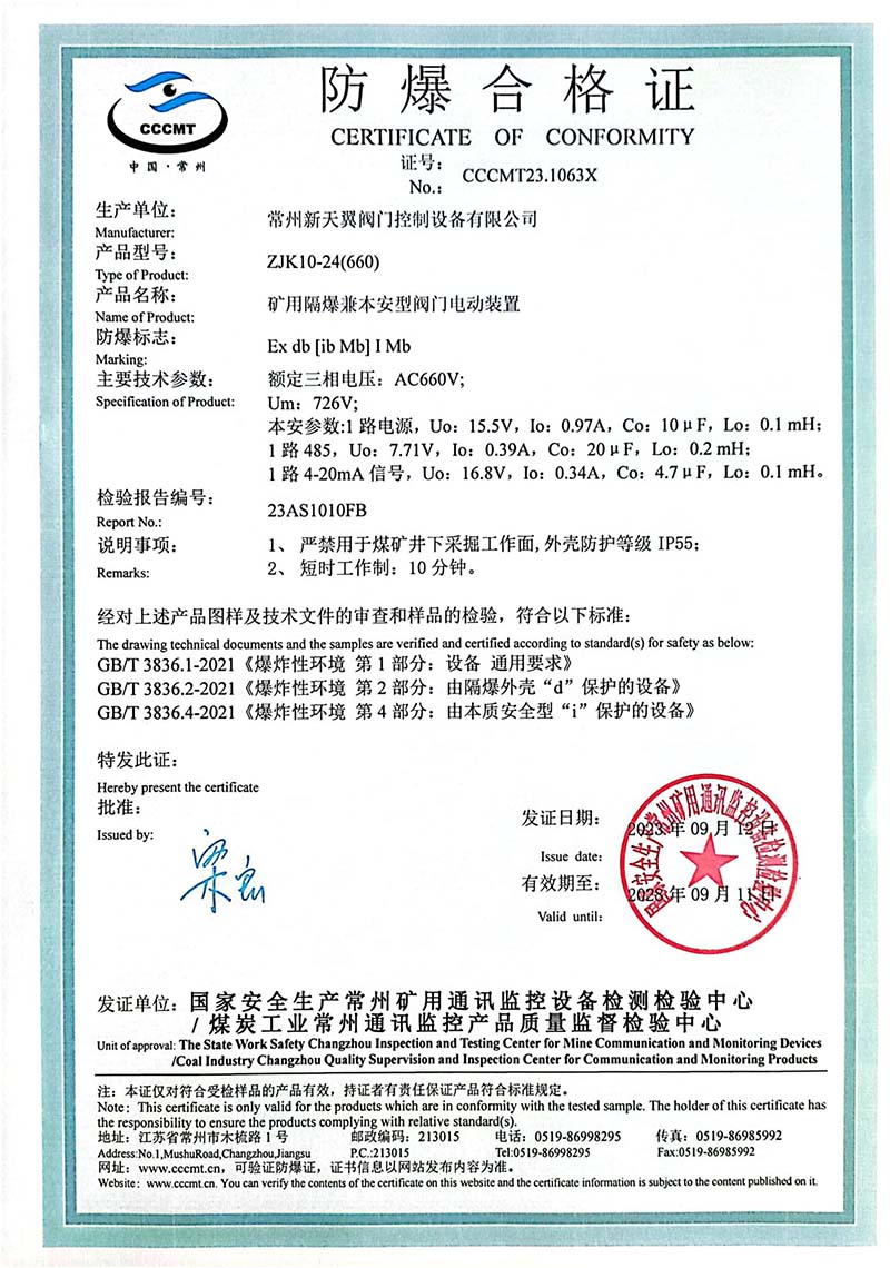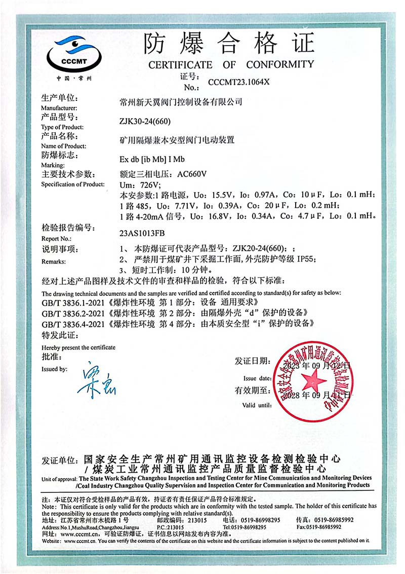 ZB20-24 200(660) 防爆合格證
