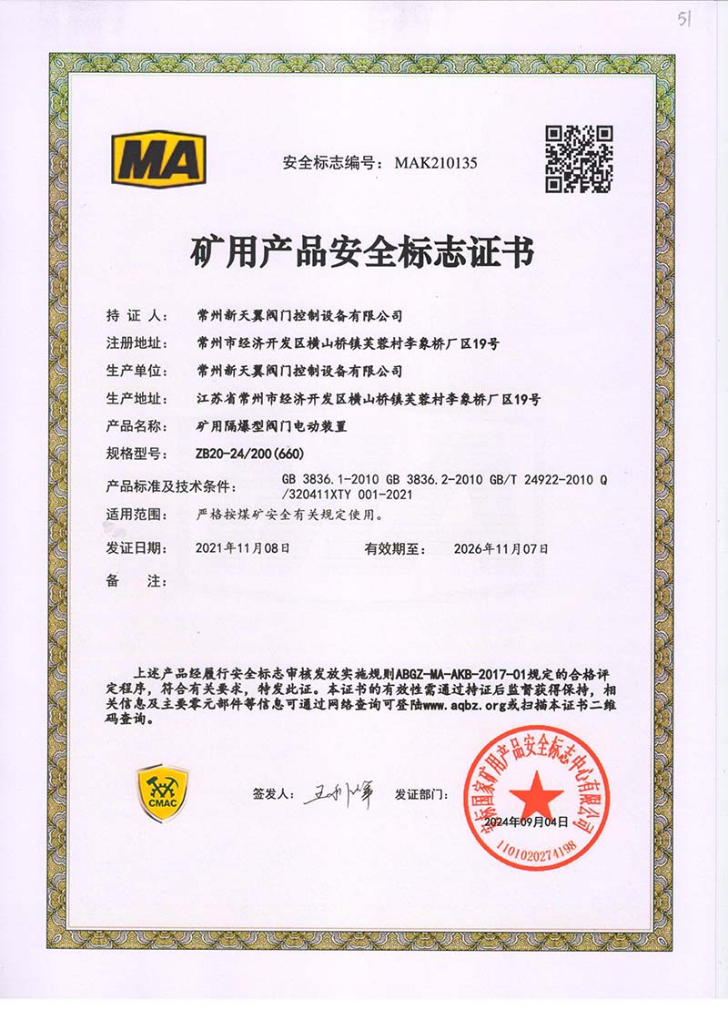 礦用產品安全標志證書ZB30-24 200(660)